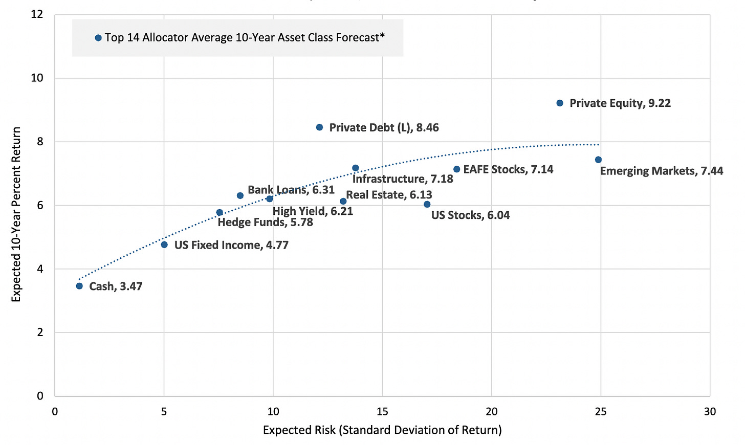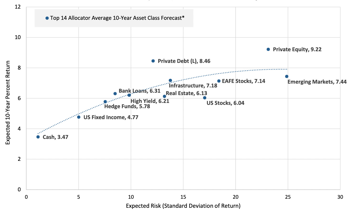Cliffwater’s Consensus 10-Year Expected Return and Risk