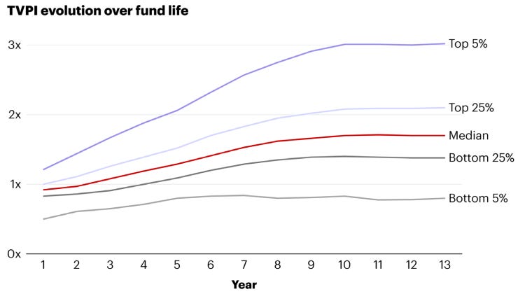 TVPI begins to flatten after year eight