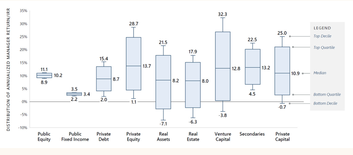 Apollo: Dispersion in private markets is meaningfully wider than in public markets.