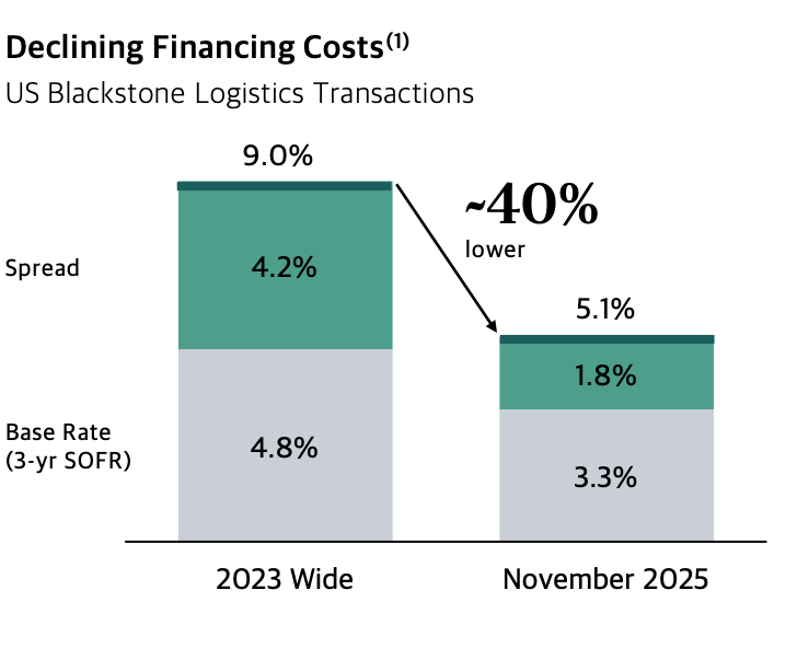 Blackstone is seeing improved financing translate into more bidders showing up to buy assets, and we expect this to continue.