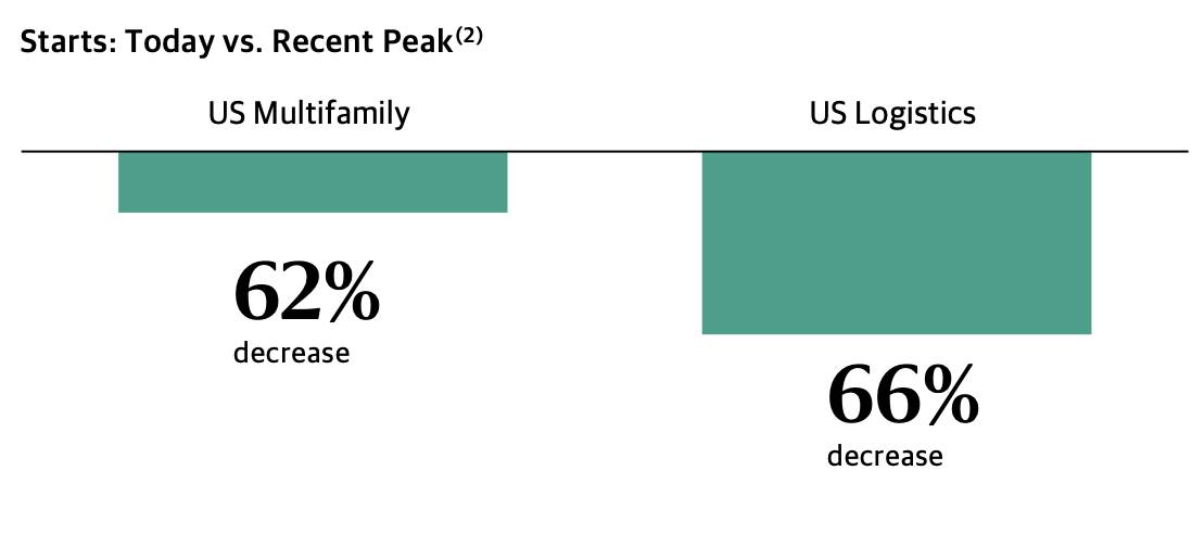 Blackstone is seeing a dramatic decline in new supply across virtually every sector globally, down 60%+ across our major US sectors.