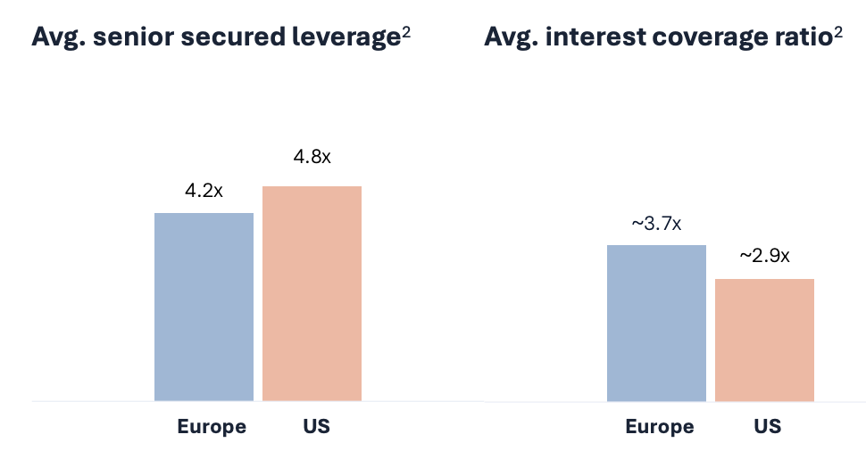Market participants might attribute this to an assumed greater proportion of TMT and healthcare deals in the US, sectors often associated with higher leverage. But the European direct lending market has similar or greater exposure to TMT and healthcare relative to US direct lending