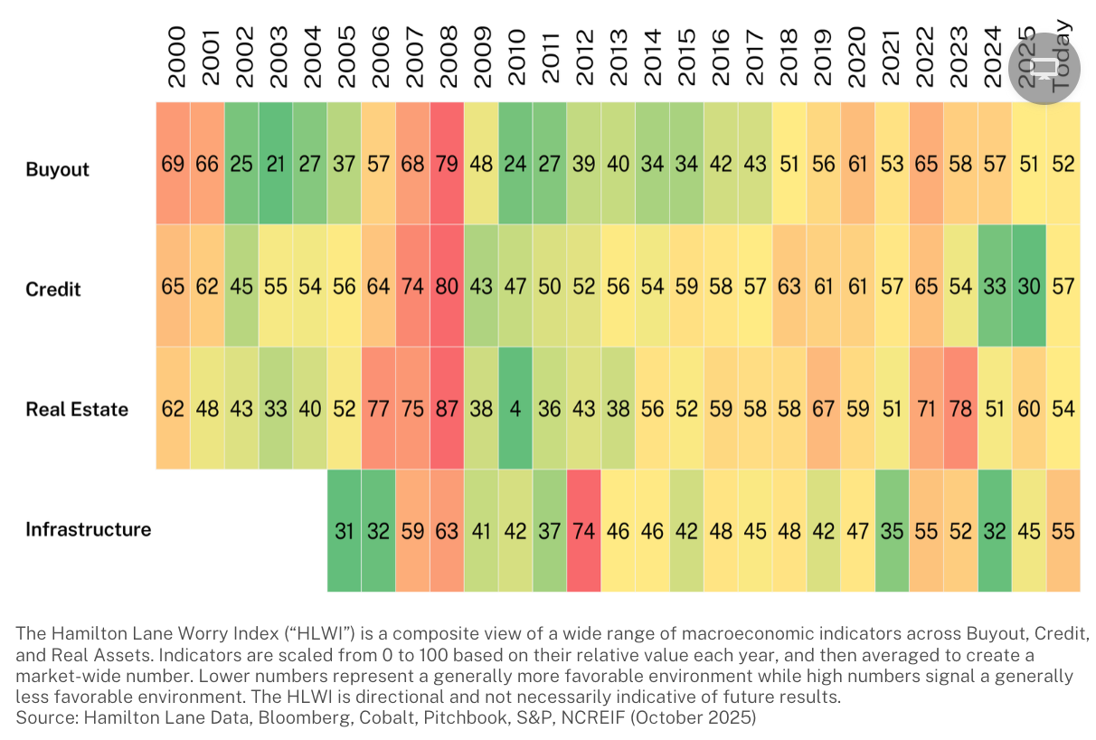 The Hamilton Lane Worry Index is a composite of Hamilton Lane’s sentiment indicators.