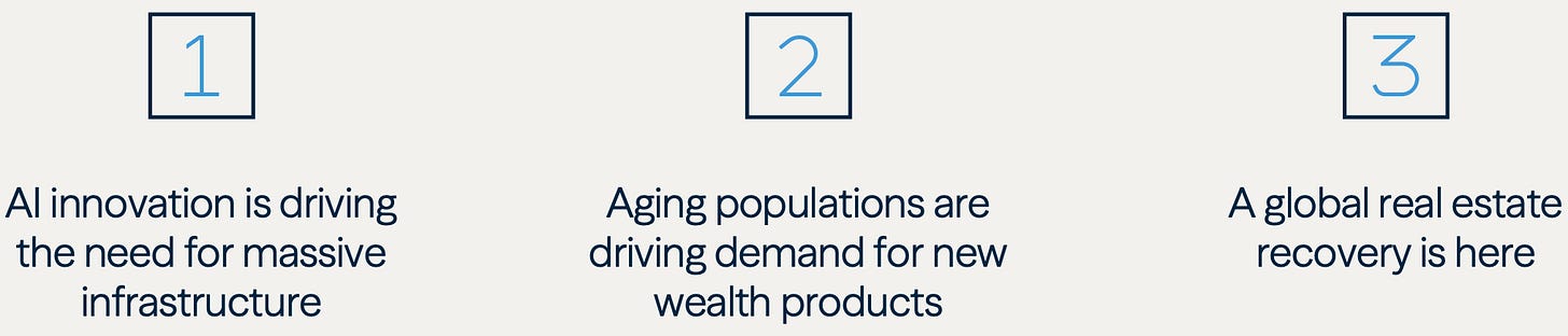 How do I get a job in “strategy” at one of these managers? Is the brief to Ctrl+C the industry-standard “double in five years” slide and Ctrl+V our logo? (See Blue Owl, Apollo, BlackRock, and below)