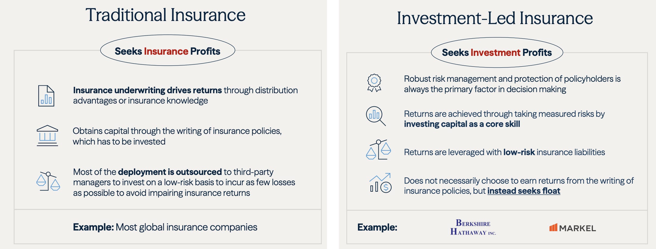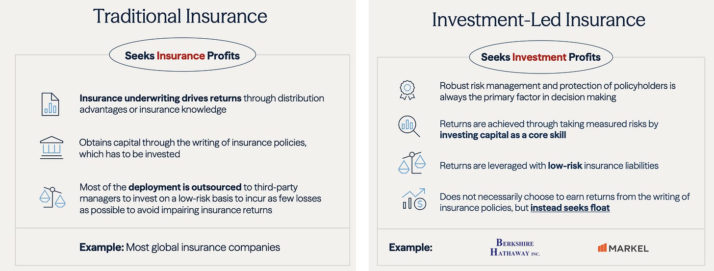 “Traditional insurance underwrites insurance, and tries to make money by underwriting insurance. It takes the float it gets, and it gives it to managers, and tries to not lose money.