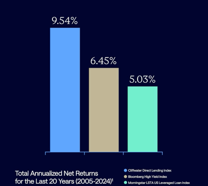 The direct lending market has delivered a return over that 20-year period thatâs been well in excess of both the high-yield and leverage loan markets