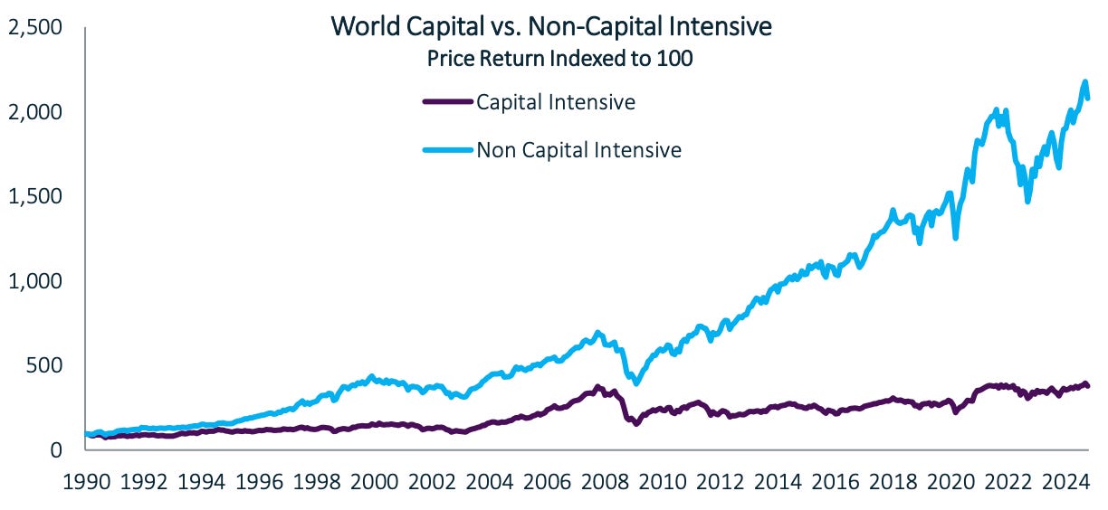 The synopsis is that if you compared the returns of Capital Intensive companies and Non Capital Intensive then the Non Intensive outperform by nearly 10x.