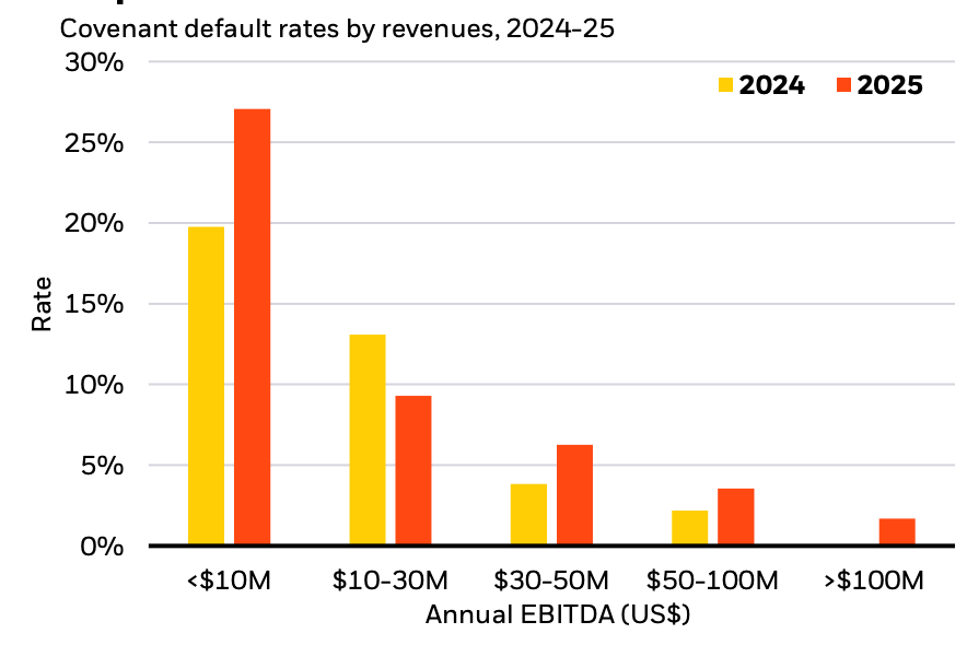 We see the most pressure within smaller companies, which we believe have a limited margin for error navigating macroeconomic shocks. Companies with less than $25 million of EBITDA are experiencing meaningfully higher covenant defaults, compared to companies at the upper end of the market, reinforcing our view that experienced private credit managers with scale that invest in larger companies are best positioned during challenging macroeconomic environments.