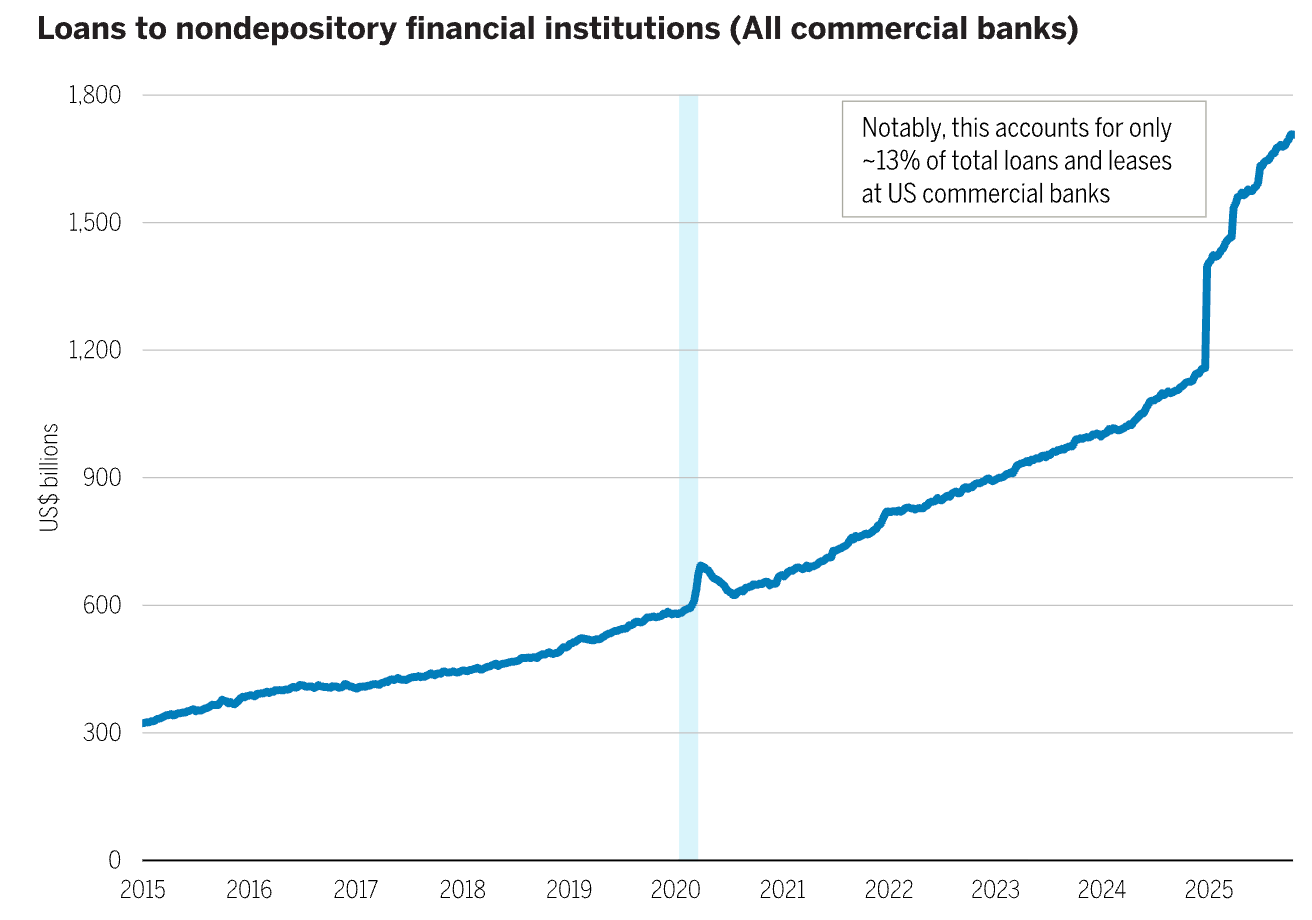 Loans to non-deposit financial institutions have increased 3x since 2020.
