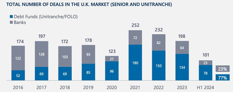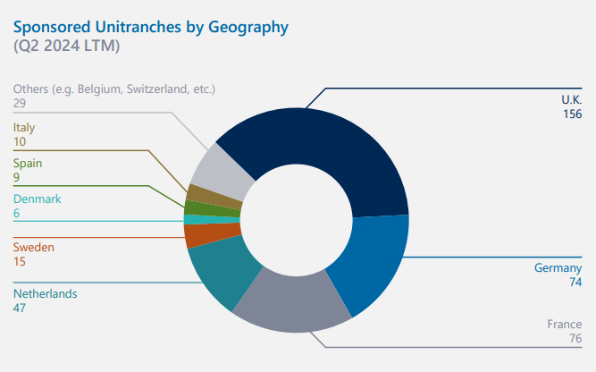 These markets remained strong unitranche geographies, accounting for over 80% of deals and showing substantial collective growth.