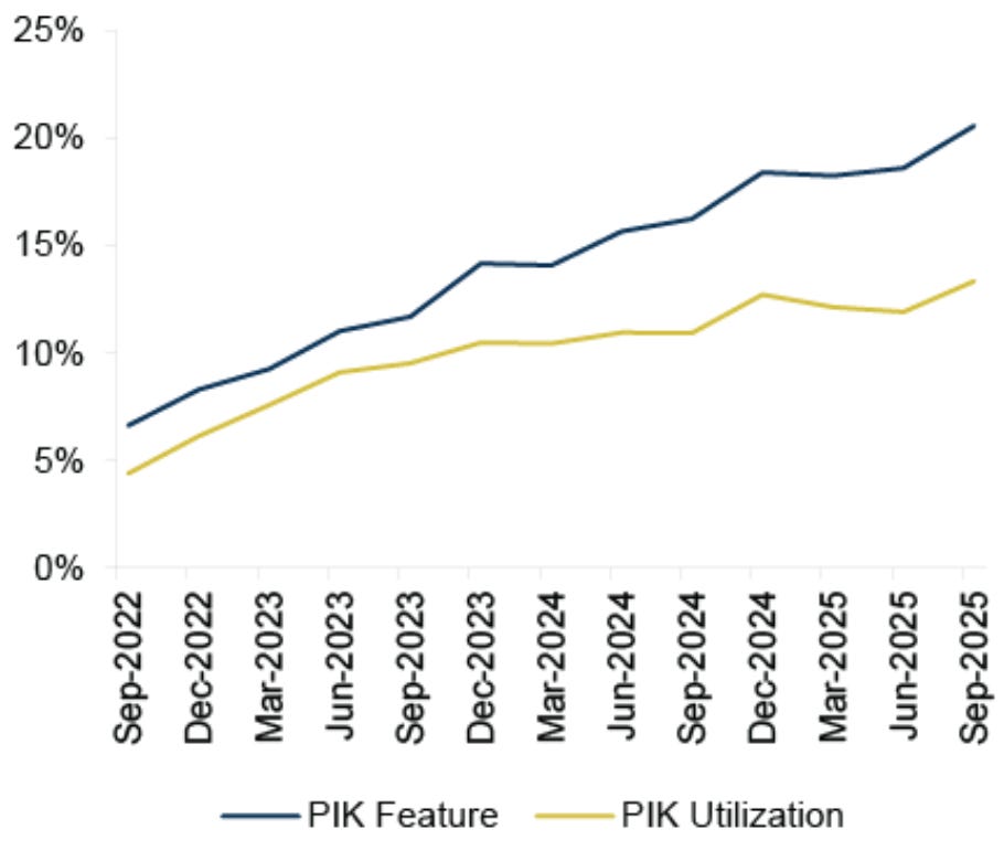 Roughly 20% of private loans have PIK optionality and over half have ended up taking the option.