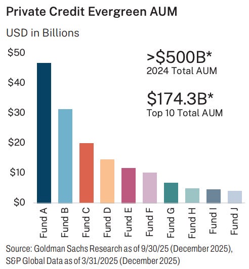 The evergreen world has gone from, effectively, $0 to $500 billion in the last decade. And the top managers are vacuuming up impressive sums: The largest evergreen fund’s NAV exceeds the combined NAV of the five largest closed-end funds raised in 2024.