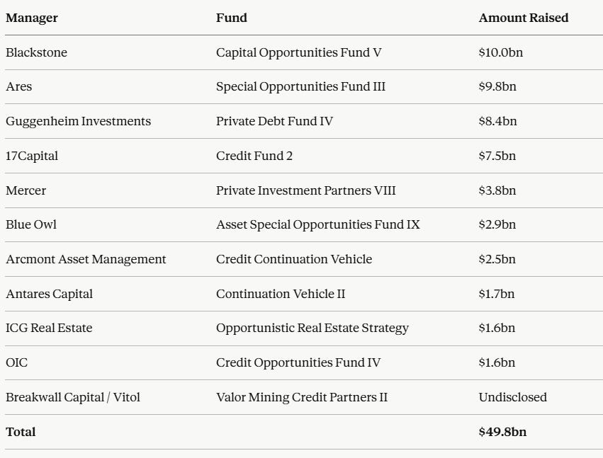 Last week’s post was tough reading but thankfully April has roared back with managers raising nearly $50 billion in first two weeks. For context, there was only $89 billion raised in the whole of Q1. Below with summary, see the full details here.