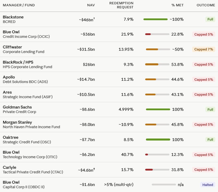 80% of Oaktree’s total investment in private credit is on behalf of institutional clients, meaning very little was placed with the public. While the leading managers of public direct lending vehicles have $40-50 billion or more there, we have just over $10 billion.