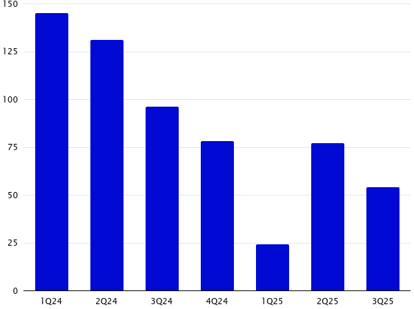 People often say today’s tight spreads and weaker structures are because too much dry powder and fresh capital has moved into private credit. While we understand the sentiment, we don’t think that’s the root cause. Private equity has significantly more dry powder than private credit, (see Figure 1). They’re simply not deploying it. The real issue is too few deals in the market, (see Figure 2).
