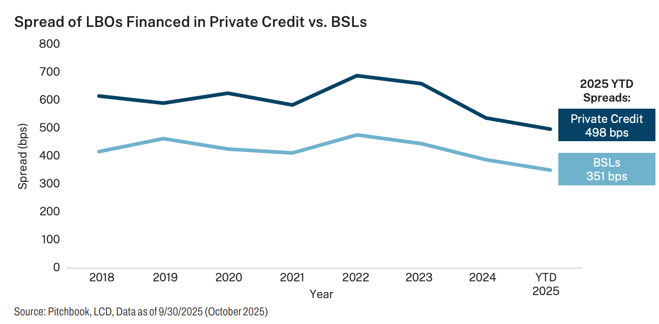 The casual observer would think that yields and spreads of private credit over broadly syndicated loans were collapsing.